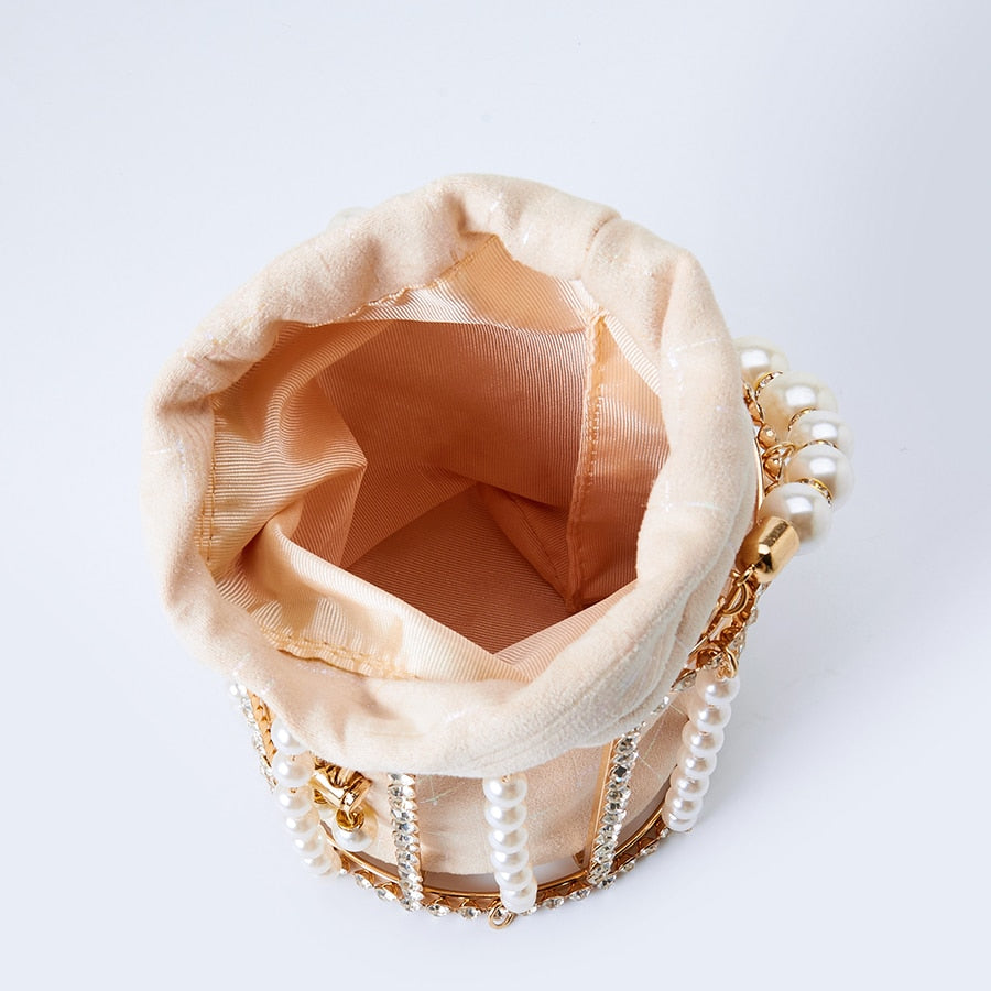 Rhinestone Evening Pearl Clutch Bag Women Luxury Handmade Diamond Beaded Bucket Purses and Handbags Bridal Wedding Party Sweet