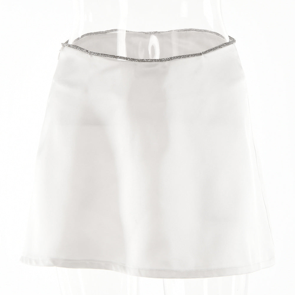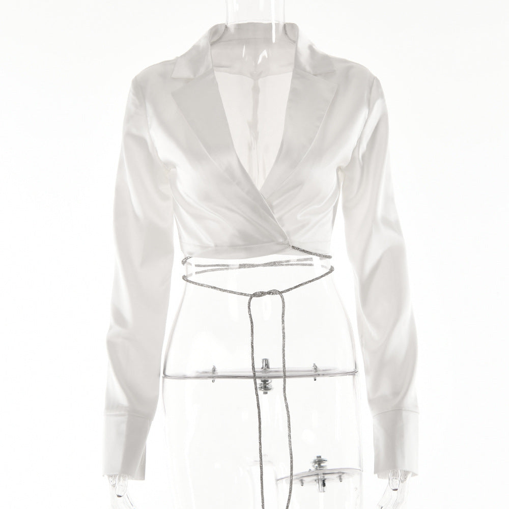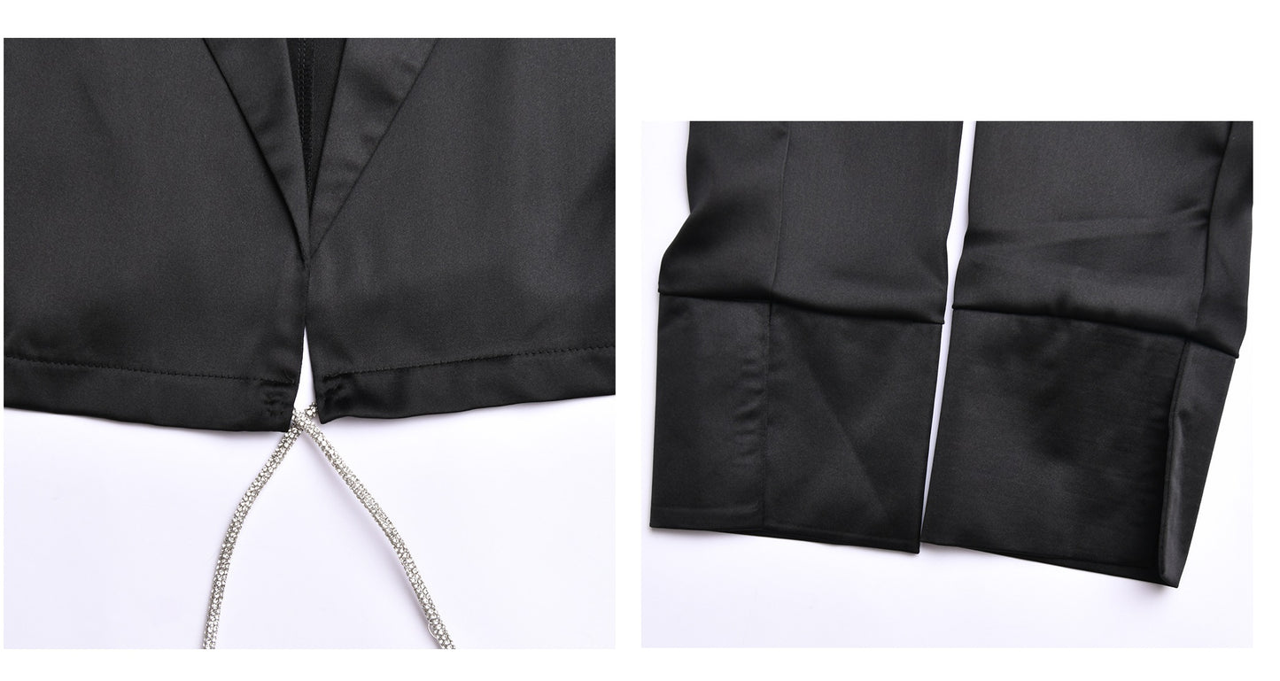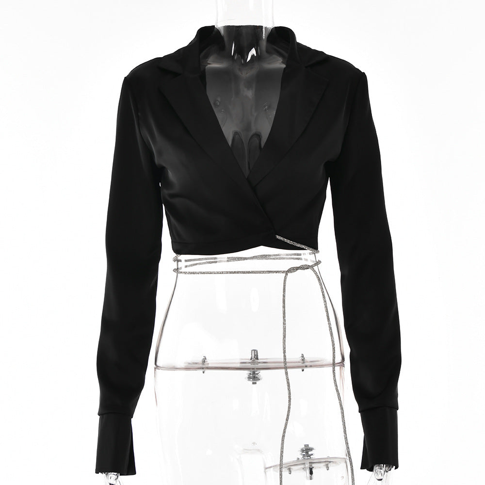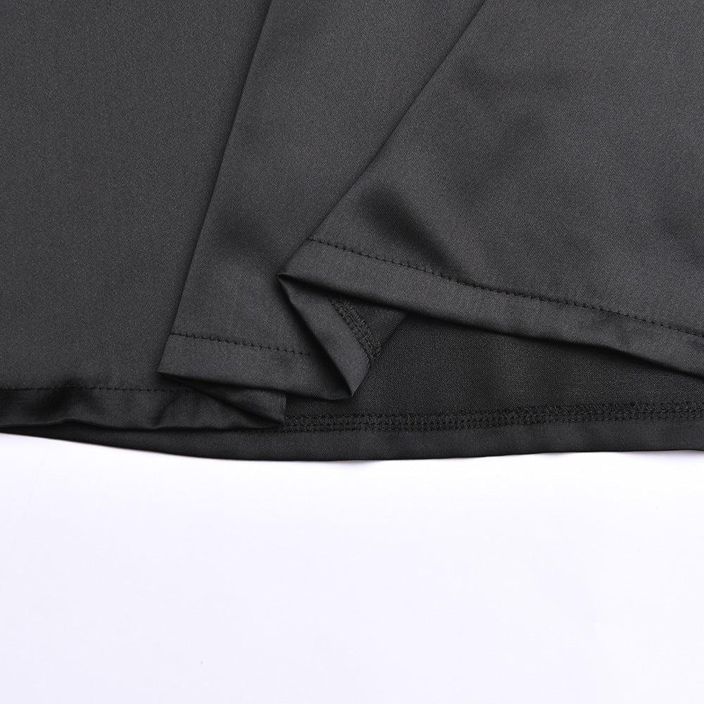 Spice Girls slim Rose Satin high waist lace up short skirt long sleeve cardigan two piece set for women