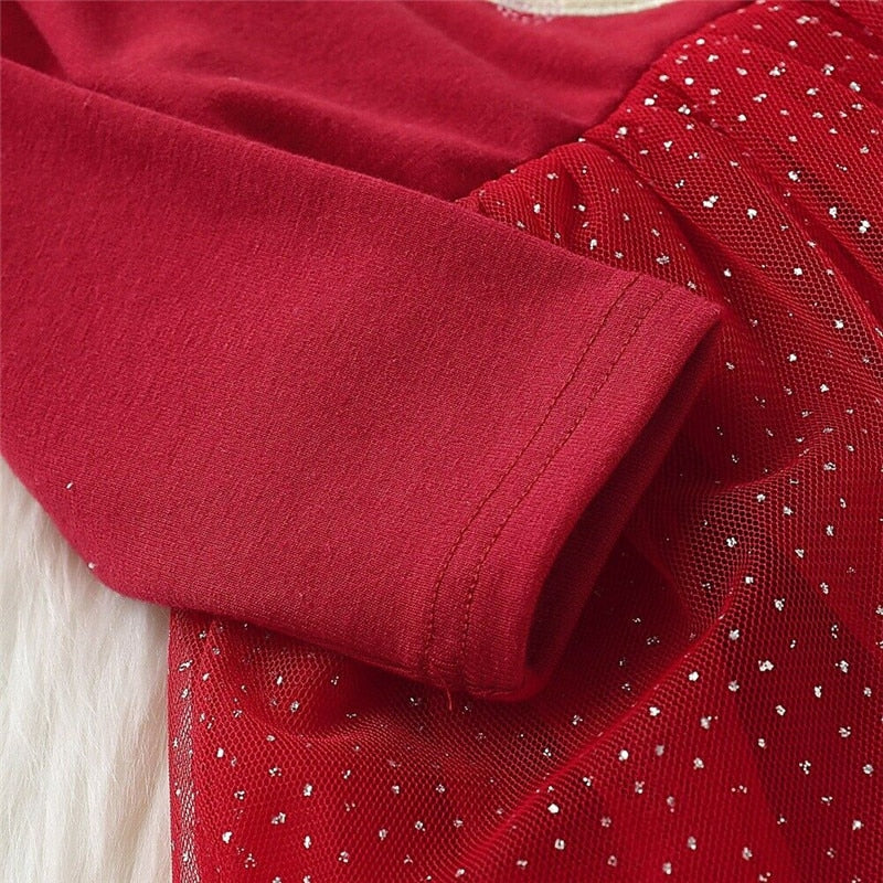 Toddler Kid Baby Girl Xmas Elk DeerClothes Long Sleeve Lace Tutu Tulle Princess Dress Christmas Long Sleeve Warm Gown Dresses