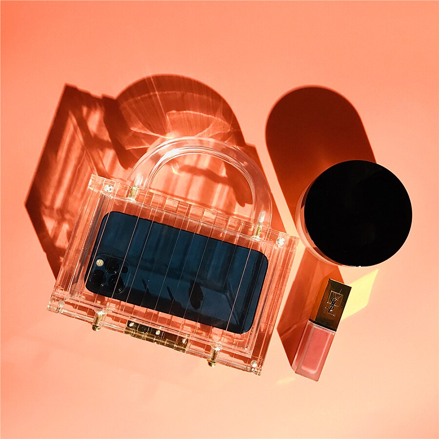 Transparent Striped Acrylic Evening Bag Women New Top Handle Small Square Clutch Purse Female Crystal Handbag High Quality
